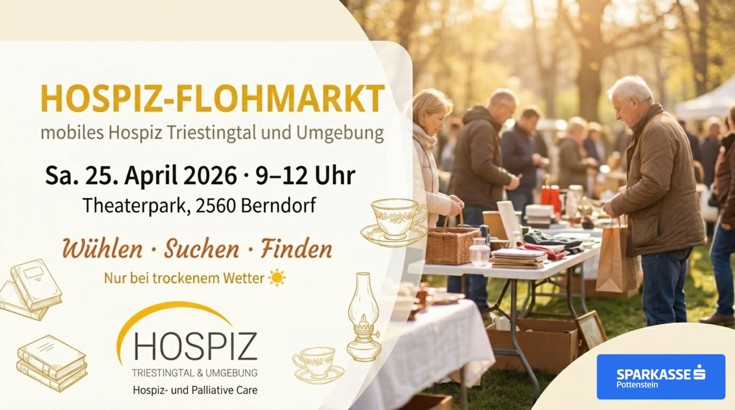 Am 03.05.2025 findet unser Hospiz-Flohmarkt diesmal im Theaterpark Berndorf statt.